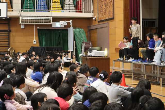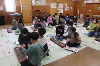 今日は、4年生の子どもたちが、美郷町楽器演奏等指導者派遣事業の一環として、箏奏者の先生を講師にお招きして「文化琴」の演奏体験をしました。琴の演奏を聴いたり実際に演奏をしたりするのは初めての4年生。先生が弾く美しい琴の音色にうっとりと聞き入っていました。