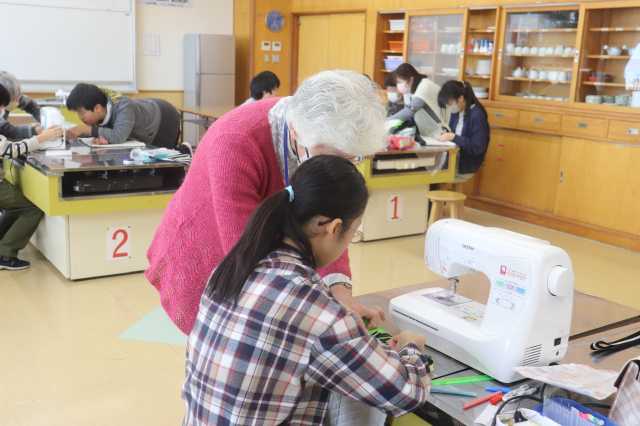 家庭科のミシンの学習で、5年生はエプロン、6年生はトートバック作りに取り組みました。ミシンの学習は、普段ミシンに触れる機会が少ないため、子どもたちが苦戦する学習の一つです。上糸と下糸をミシンにかけたり、ボビンに糸を巻いたりといった縫い始めるまでの準備や糸が絡まったときの対応等々、担任一人では手が回らない状態です。